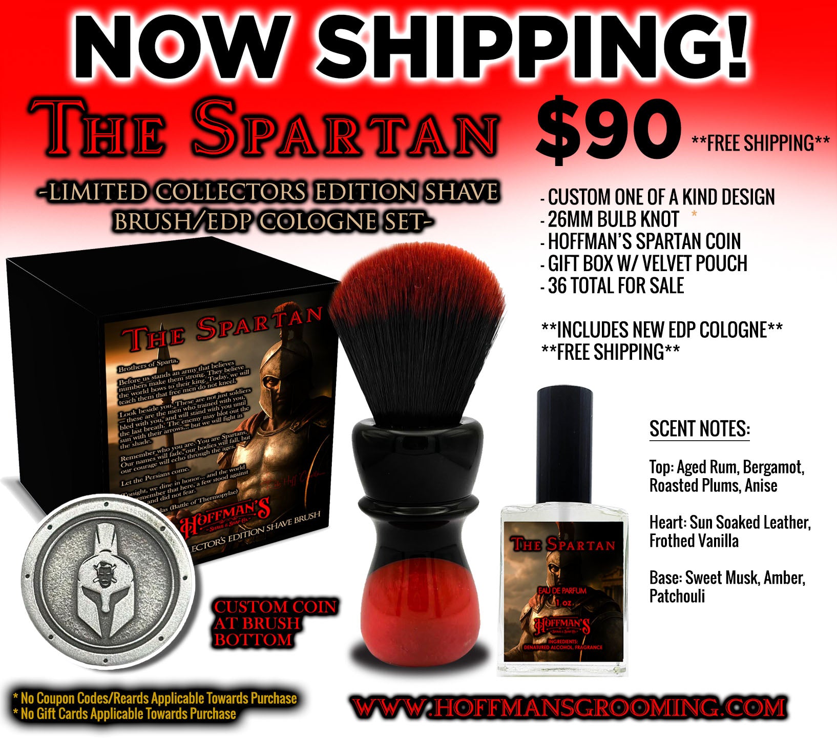The Spartan Limited Collectors Edition Custom Shave Brush w Bonus EDP Cologne Bundle
